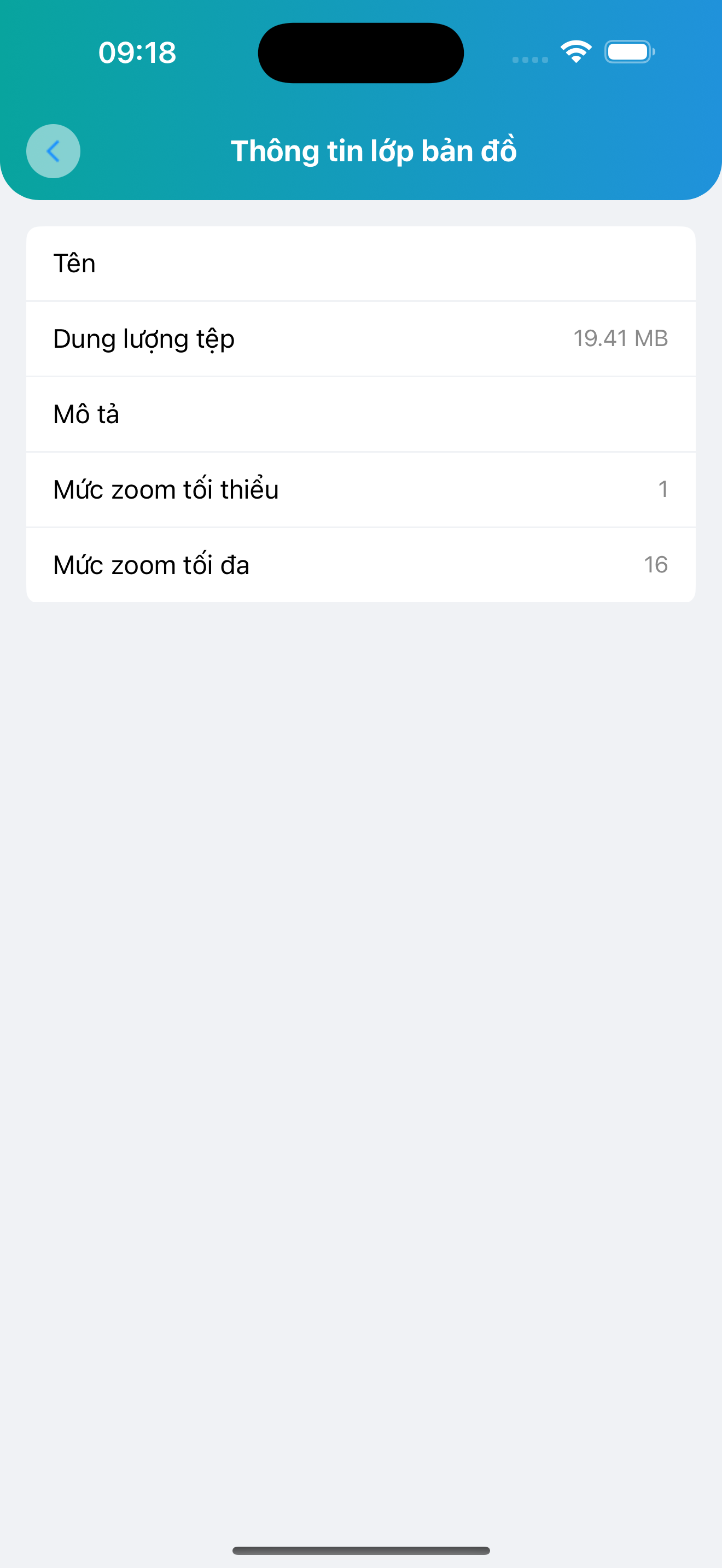 Người dùng cũng có thể xem lại danh sách các lớp bản đồ đã tải.