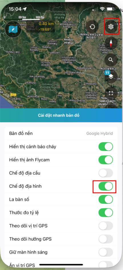 Sau khi tải về hãy bật chế độ địa hình, tại Cài đặt nhanh bản đồ