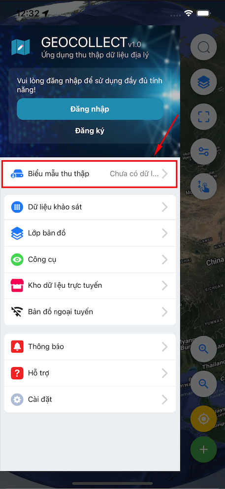 - Bước 1: Vào Menu > Biểu mẫu thu thập.