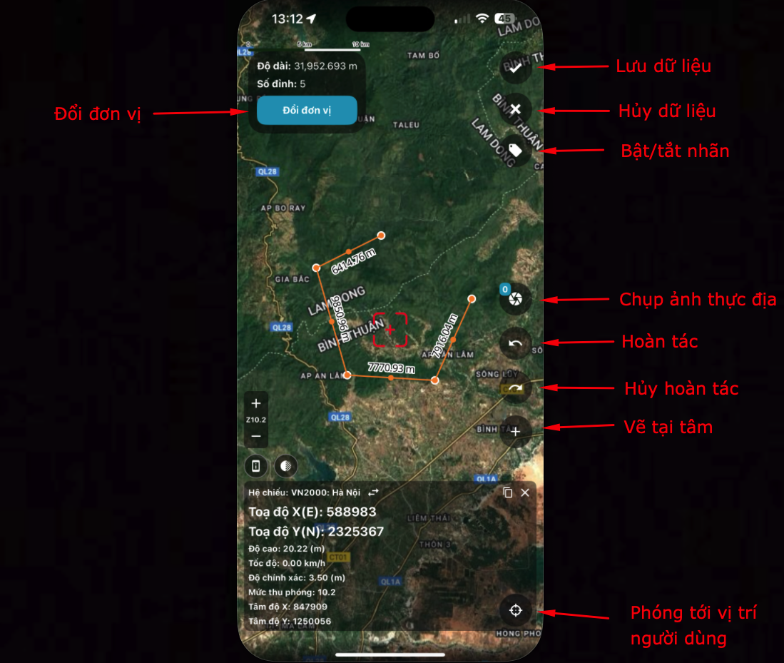 Bạn có thể kéo/thả các đỉnh để có thể chỉnh sửa hình học khi vẽ thủ công