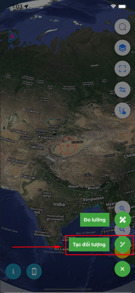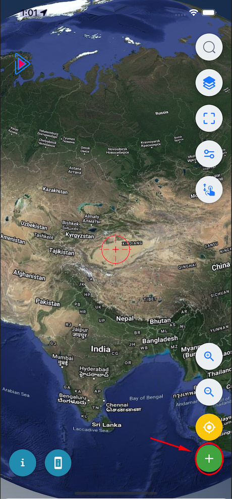 - Bước 1: Bấm dấu (+) ở góc dưới, bên phải của màn hình bản đồ.