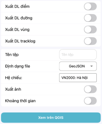 - Bước 2: Chọn loại dữ liệu cần xuất: Điểm, đường, vùng